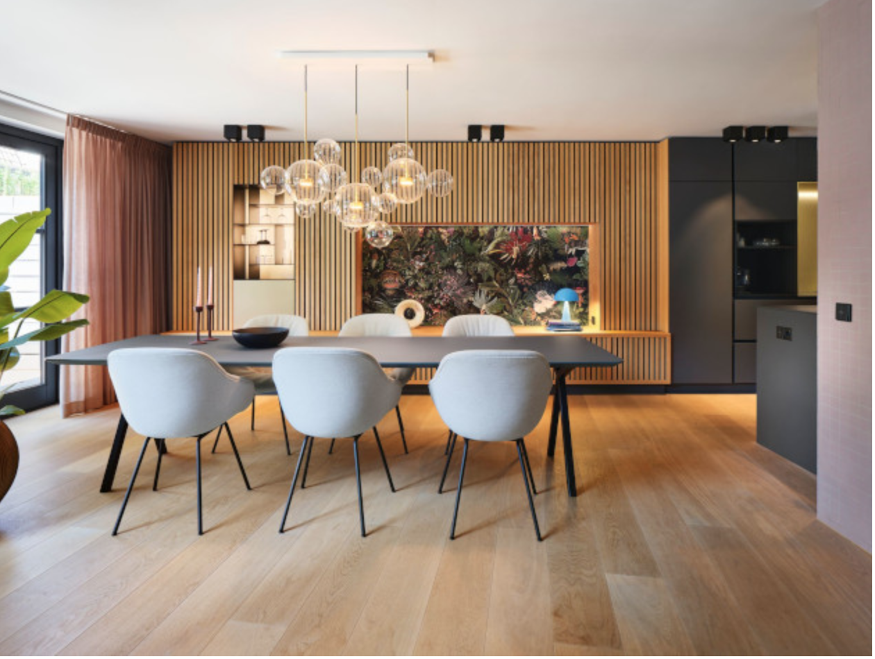 JUNG siūlomos technologijos padeda namams tapti ne tik funkcionaliems, bet ir emociškai patraukliems. Išmanus apšvietimo valdymas leidžia lengvai keisti nuotaiką – nuo ryškios, energijos suteikiančios šviesos ryte iki švelnios, raminančios atmosferos vakare. Vos vienu paspaudimu galima sukurti jaukią aplinką vakarienei ar poilsiui.
